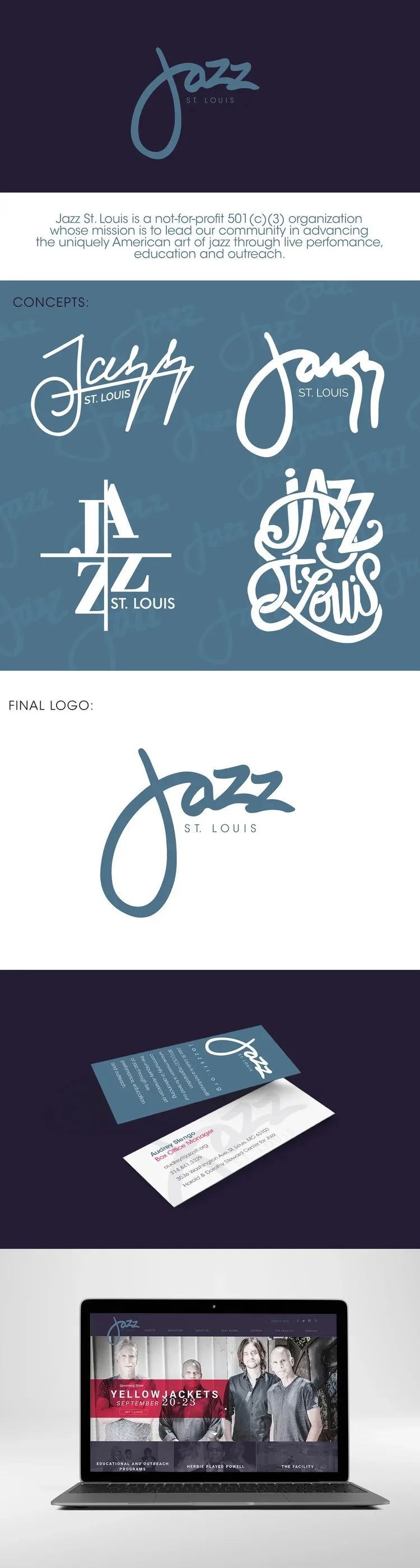 Jazz St. Louis is a non-profit organization located in Midtown St. Louis. It's mission is to spread the art form of jazz through Entertainment and Education. The organization requested for a new brand identity, beginning with a new logo. I began by developing multiple concepts through illustration. We developed a color palette and sense of use throughout the deliverables. The Jazz St. Louis logo is still visible today on their site and printed ads/posters.